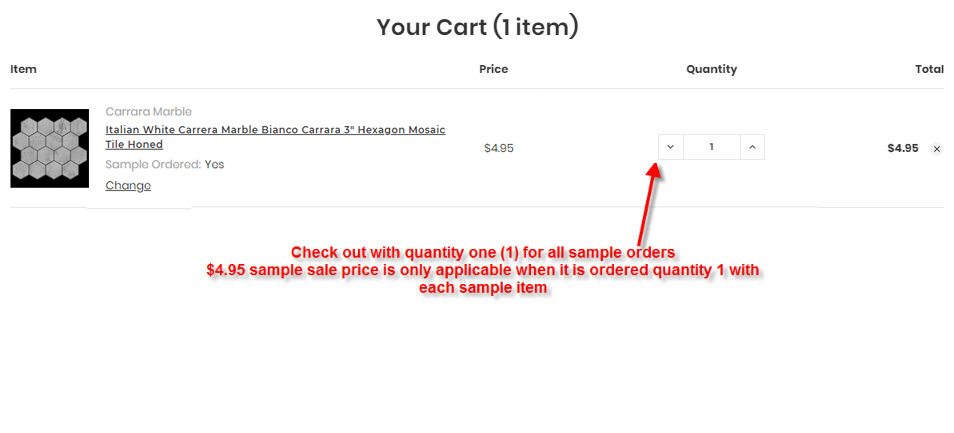 ★ STEP 3 : Check out with quantity one (1) for sample orders